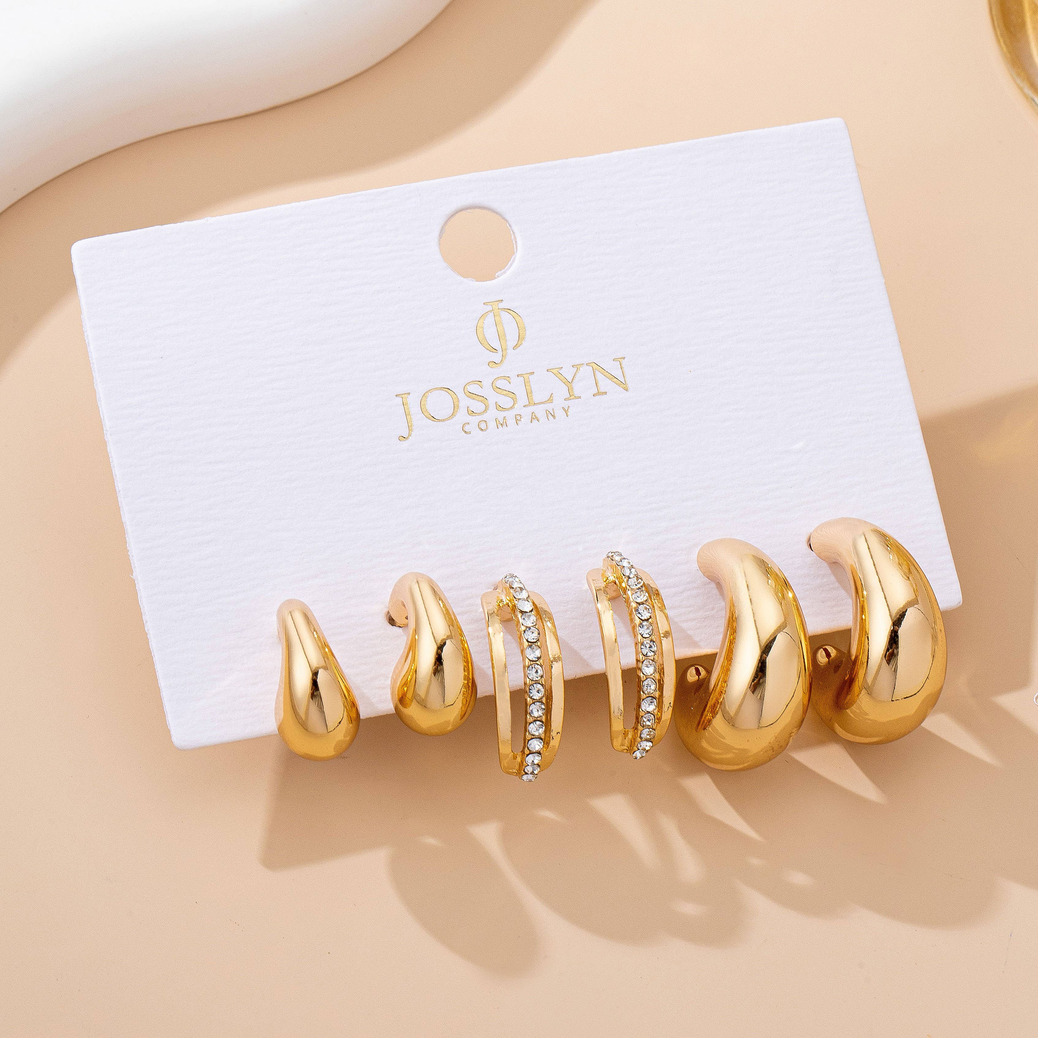 Chunky Hoop Rhinestone Trio Earring Set