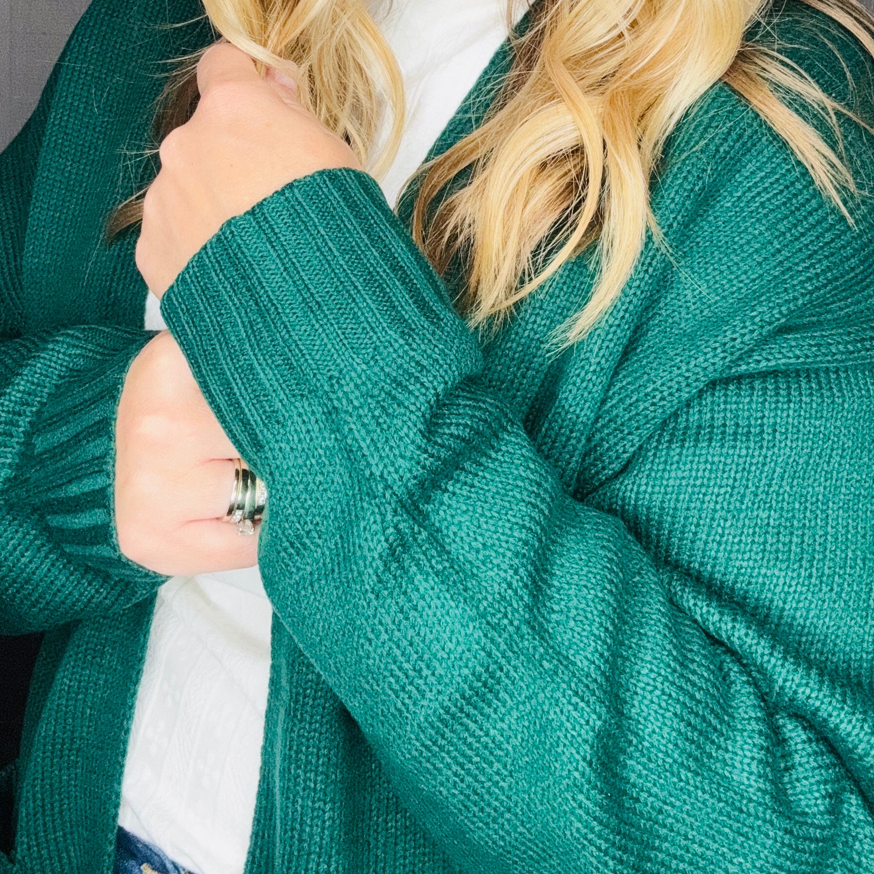 Dark Green Oversized Open Front Carigan Sweater with Pockets