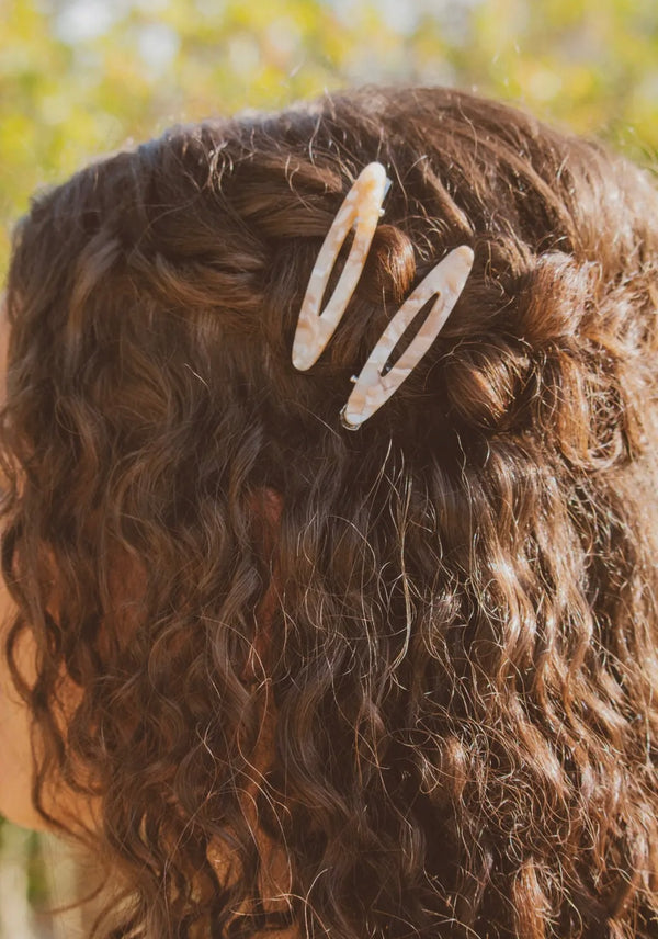 Beige Marble Oval Alligator Clips-2 pack