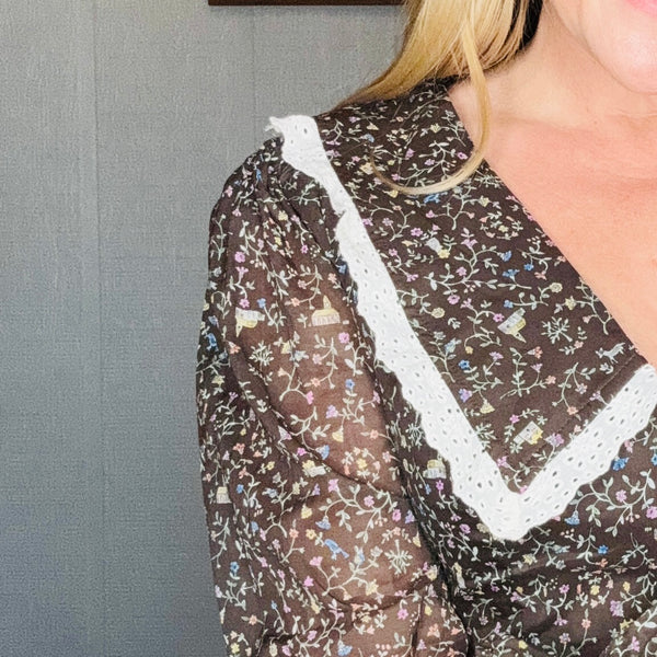 Mocha Peter Pan Collar Flared Mini Dress Darling Peter Pan collar floral dress 100% cotton Lining 100% rayon