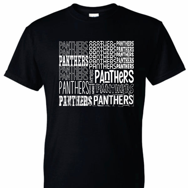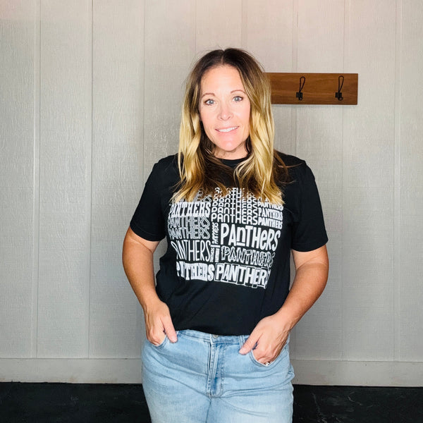 How many ways can you say go panthers?!  This tee showcases abstract fonts to celebrate your panther pride!  Standard Bella Canvas Sizing.