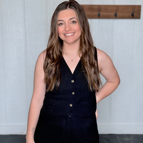 Meet your new power set. Our Black Rayon Linen Vest and Shorts Set blends tailored sophistication with relaxed ease, giving you that “put-together without trying too hard” kind of energy. The structured vest features a sleek button-down front and clean...