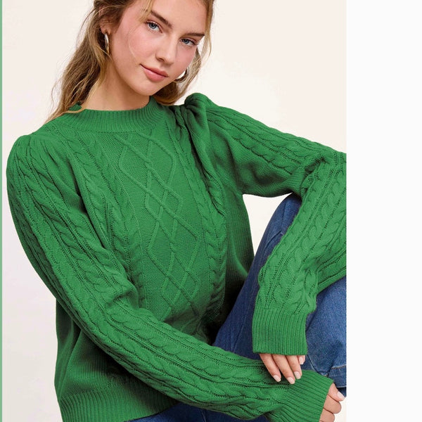 Super Soft Ribbed Crew Neck Cable Knit Sweater