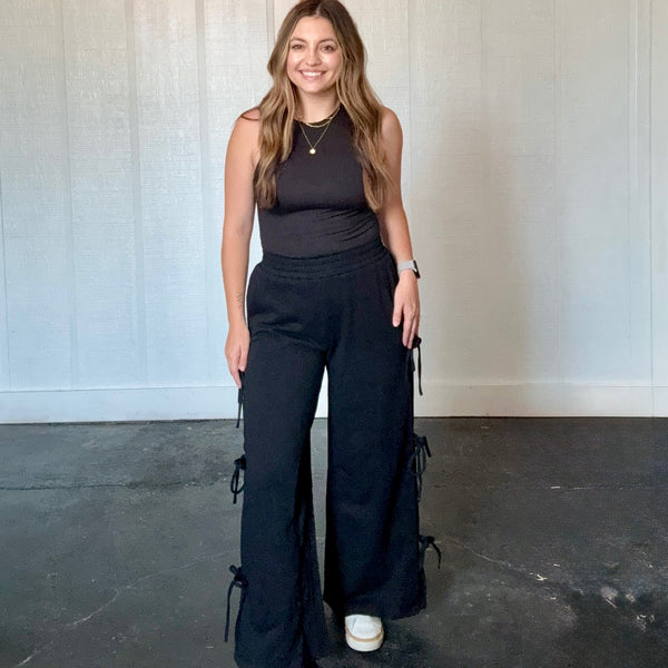Wide Leg Sweatpants with Side Bow Details